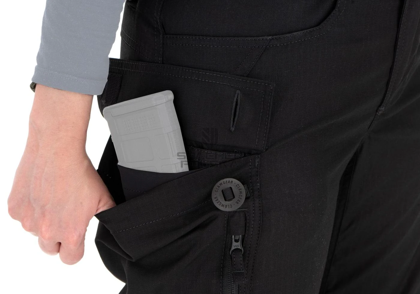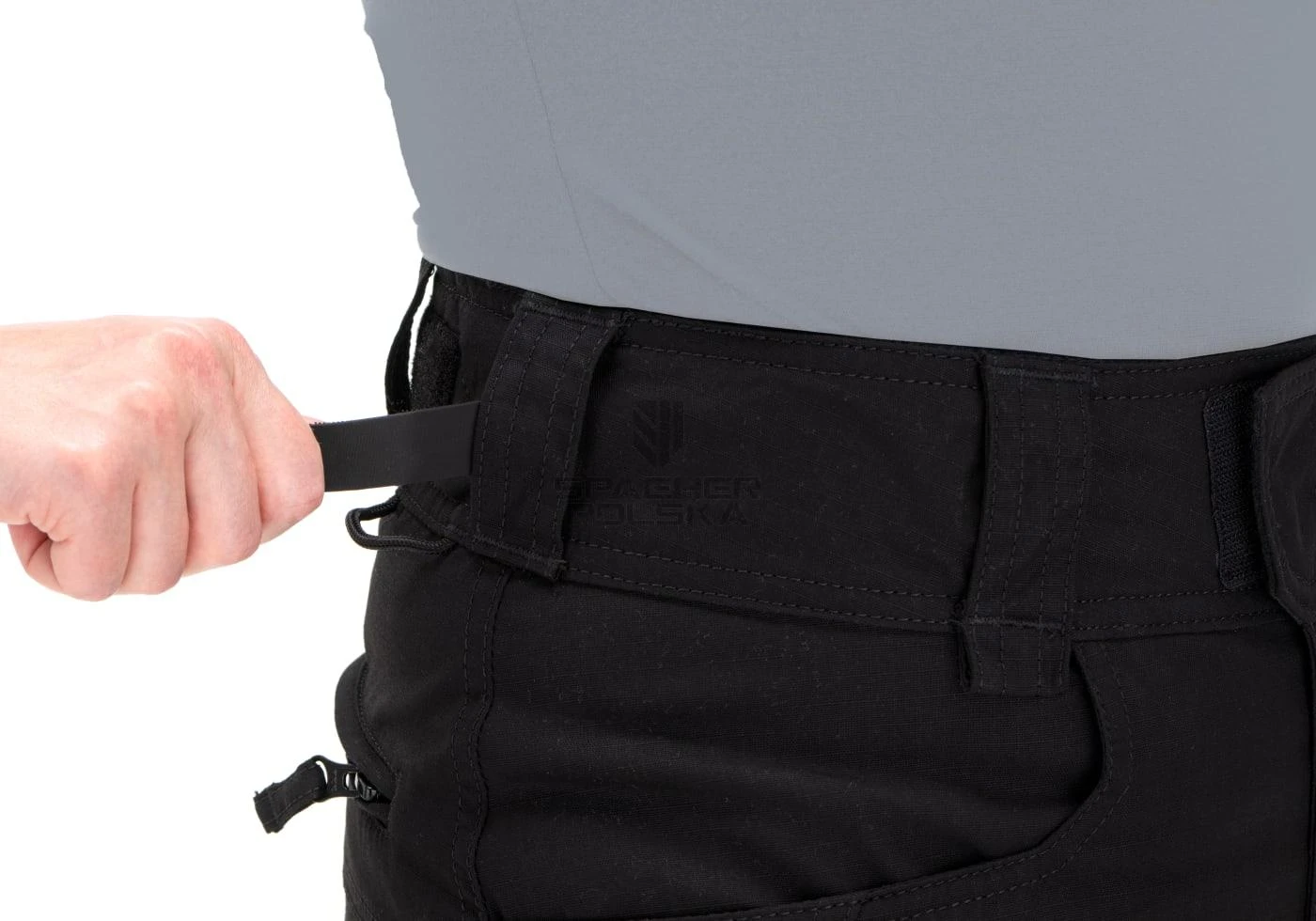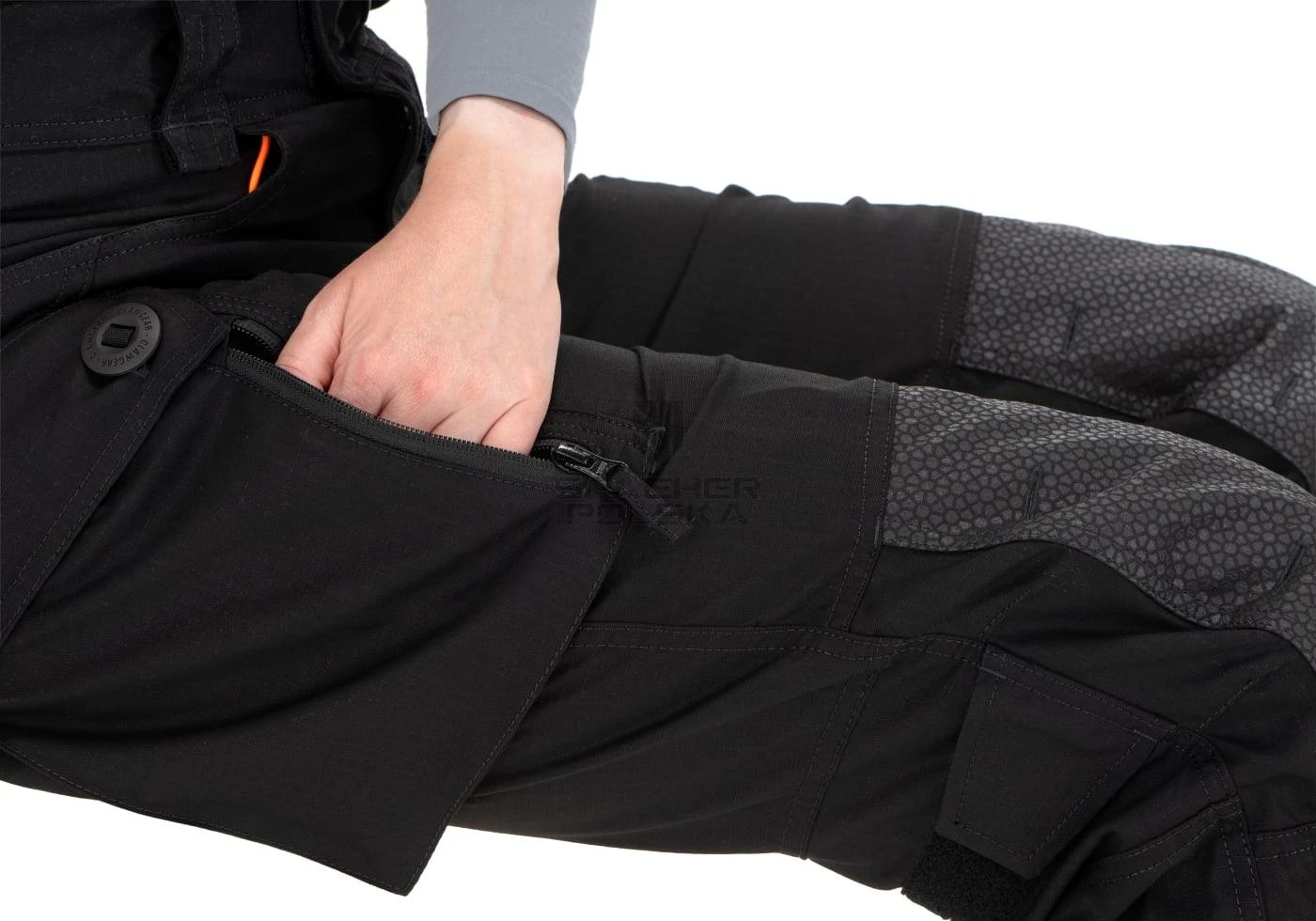 - 2 duże kieszenie na udach z zamkiem błyskawicznym „szybkiego dostępu”, zintegrowanymi przegródkami na magazynki i szlufkami do przechowywania